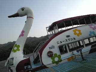 今日はお天気もよくて気持ちいいので、遊覧船で一周してみんべと昭和の香りただようスワン丸に乗船!